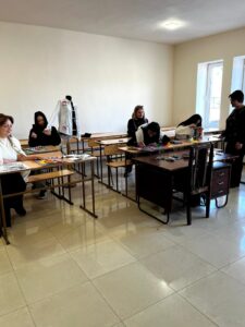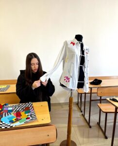 This is a glimpse into the world of students studying Outfit Design and Styling at Haybusak Basic College. During an open lesson, they showcased the art of creatively transforming shirts with vibrant threads and buttons.